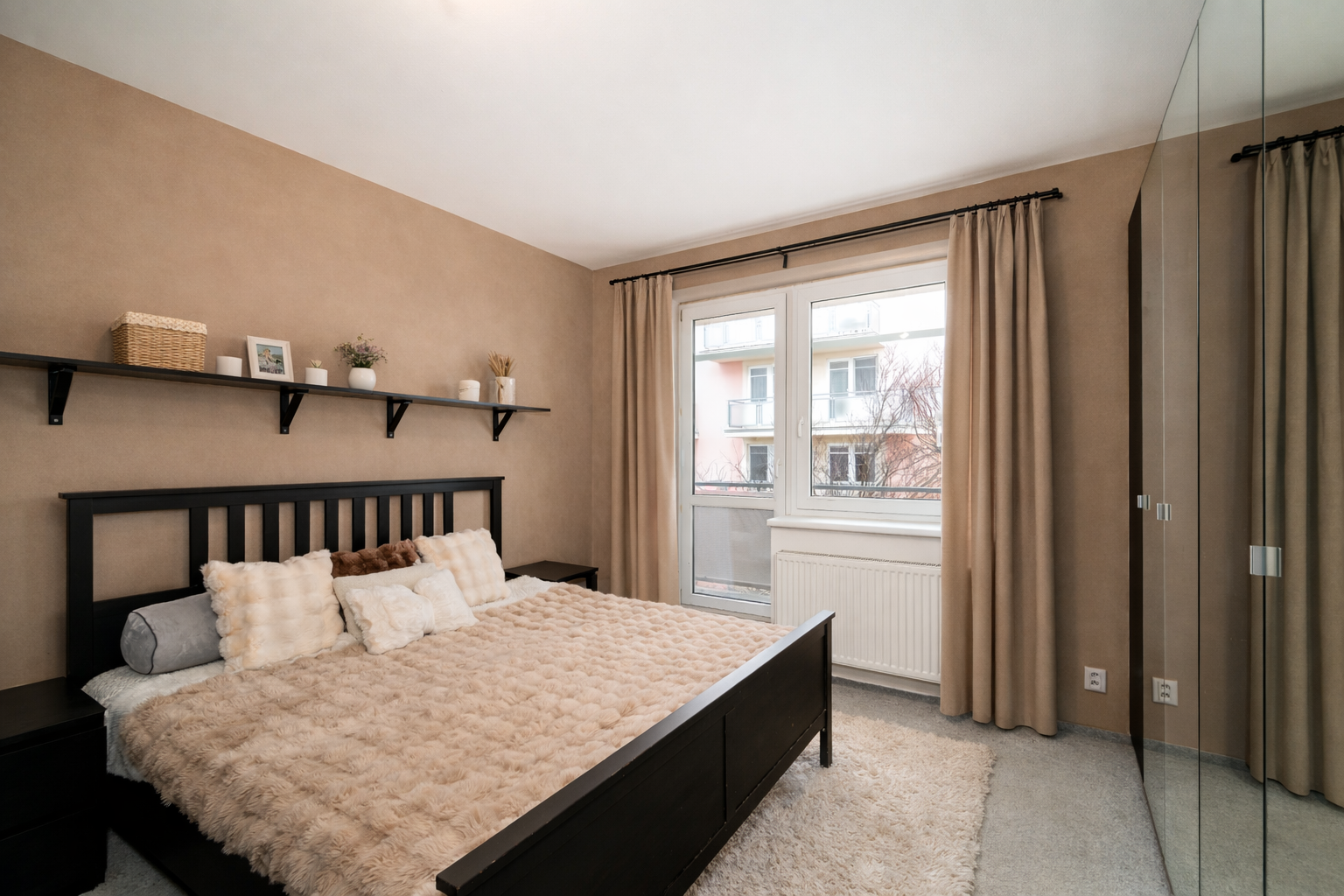 Byt nabízí dvě navzájem neprůchozí ložnice – obě skutečně plnohodnotné, bez kompromisů v metrech. Hlavní ložnice disponuje vlastním balkónem, druhý balkón je přístupný z obývacího pokoje. Byt tak nabízí dva samostatné venkovní prostory, které zvyšují komfort každodenního bydlení.