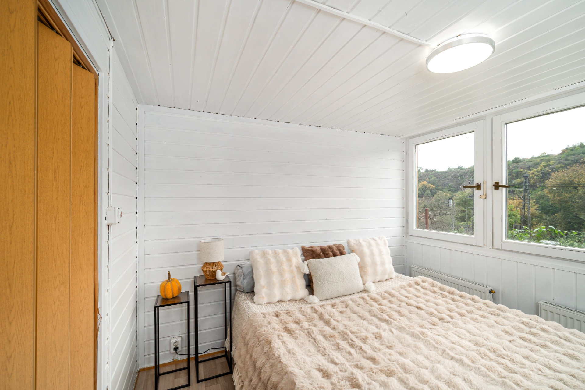 ✅ obložení interiéru bílými dřevěnými palubkami, které vytváří teplo domova