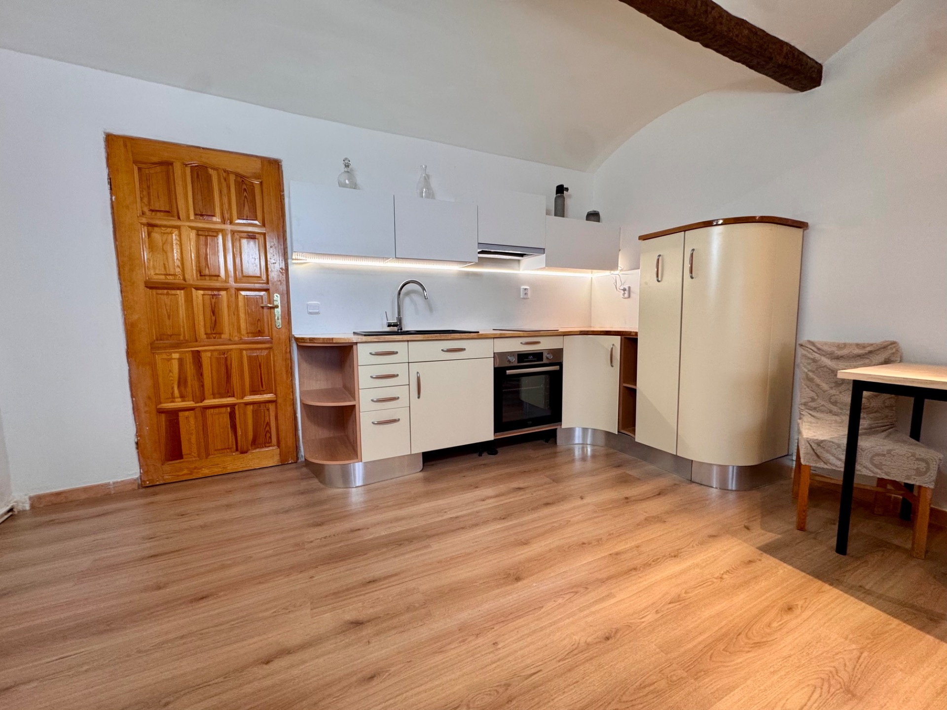 Pronájem velice pěkného kompletně vybaveného bytu 1+kk se zahrádkou a možností užívání bazénu v Roztokách u Prahy