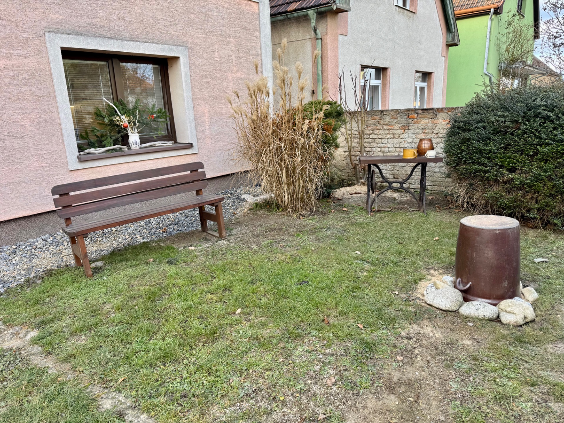 K bytu je možné užívat zahradu, která nabízí klidné místo pro posezení, ranní kávu nebo letní večery.